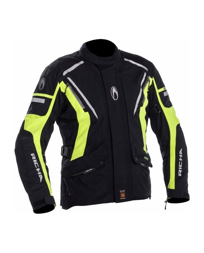 Für den Motorradfahrer, der bei jedem Wetter sowie jedem Tag auf dem Motorrad sitzt, gibt es den Richa Cyclone. Diese 100% wasserdichte Motorradjacke mit Gore-Tex-Membran verfügt über ausreichende Belüftungsmöglichkeiten, sodass der Cyclone das ganze Jahr über getragen werden kann. FahrertypDie Richa Cyclone ist eine sehr umfangsreiche Allround- Tourenmotorradjacke und eignet sich für alle Bedingungen der Abenteuer- und Touren Fahrer. Sie hat eine halblange und bequeme Passform. Innen- und AussenmaterialDie Außenhülle des Richa Cyclone besteht aus 500D Cordura in Kombination mit Cordura Spandex, um das Gleichgewicht zwischen Haltbarkeit und Flexibilität zu gewährleisten. Im Inneren der Jacke befinden sich eine 100% wasserdichte Gore-Tex Membrane sowie ein abnehmbares Thermofutter. Ansonsten hat die Cyclone innen eine feste Netzauskleidung. Am Kragen wurde extra weiches Material verwendet, sowie Gecko Stretch Textil für zusätzliche Bewegungsfreiheit.AusstattungWie wir es von Richa gewohnt sind, ist diese Motorradjacke mit D3O-Protektoren an Schultern, Ellbogen und Rücken ausgestattet. D3O hat die Eigenschaft, nur bei einem Aufprall zu härten, bei dem sie sich reibungslos abnutzen. Diese entsprechen alle der Norm CE Level 1 und bestehen aus einem flexiblen Material, das auch den Tragekomfort verbessert. Um eine angenehme Durchlüftung zu ermöglichen hat die Motorradjacke an Brust und Armen je zwei Belüftungsöffnungen. Als Speicher- und Einstellmöglichkeiten befinden sich zwei wasserdichte Taschen auf der Aussenseite und zwei kleinere Taschen an der Innenseite. Auch eine Handytasche befindet sich im Inneren der Cyclone. Mit Einstellgurten an den Armen und der Taille lässt sich die Jacke ideal an dich anpassen. Reflektierende Details machen dich bei Dunkelheit besonders sichtbar.OptionenAm unteren Teil der Jacke befindet sich ein Verbindungsreissverschluss, mit dem du ganz einfach Hose und Jacke verbinden kannst. Der Reissverschluss hat die Aufgabe im Falle eines Sturzes die beiden Teile zusammen zu halten.LieferumfangRicha Jacke inkl. D3O Protektoren