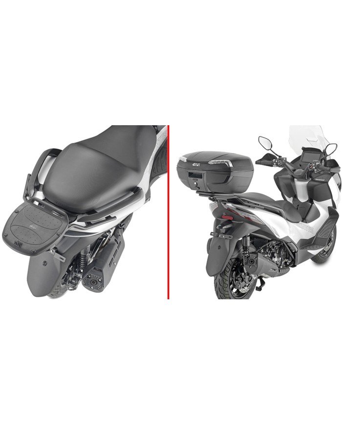 die den Aufbau der Platte für MONOKEY® und MONOLOCK® Koffer (verfügbar Alu oder Kunststoff) ermöglicht. Die verringerte Grösse, die das Profil des Fahrzeuges nicht ändert, machen dieses System zur perfekten Lösung für Scooter und Maxiscooter.