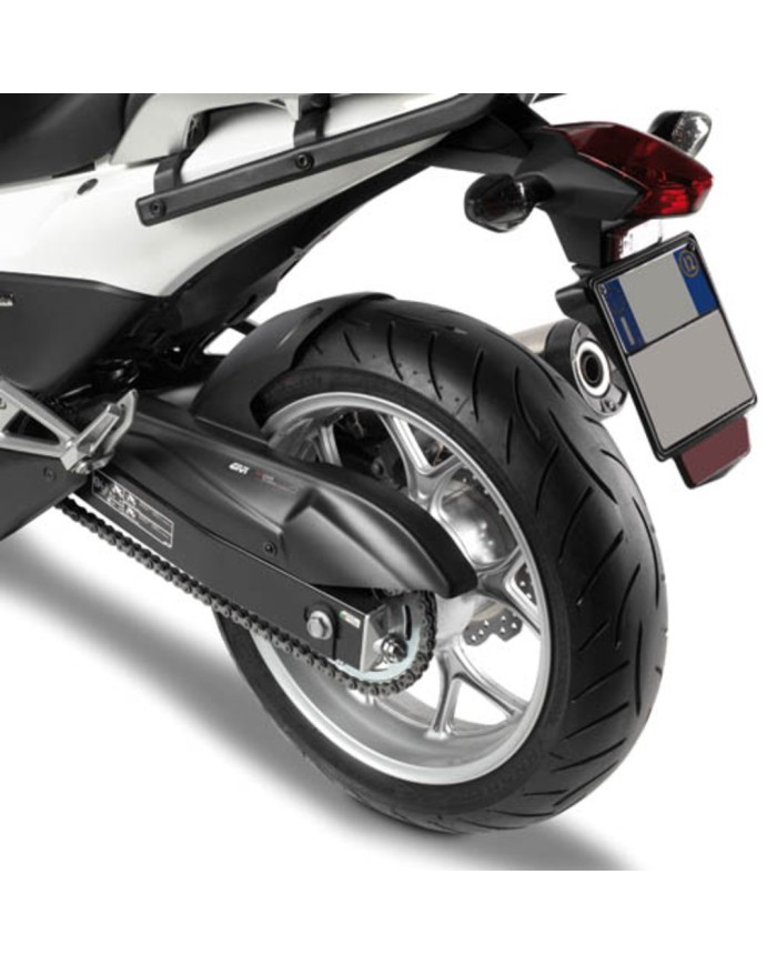 Die Hinterradabdeckung von GIVI für Motorräder besteht aus einer Kunststoffabdeckung mit einer stromlinienförmigen Linie und einem doppelten Schutzzweck.