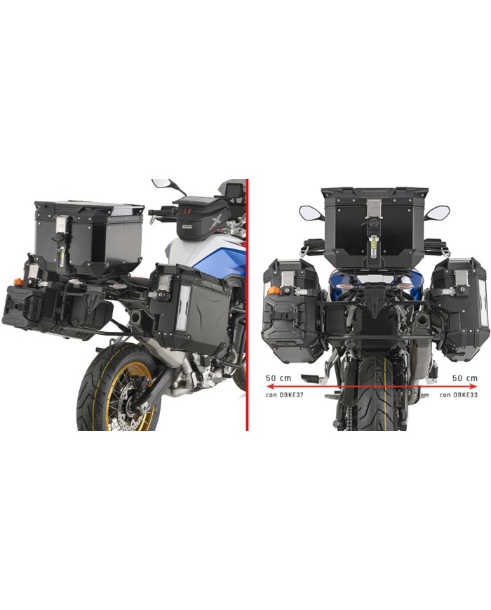 nur mit Topcase Träger SR5145 oder 5145KIT montierbarDurchmesser 18 mmdie rechte Seite ist nur mit den Seitenkoffern mit seitlichem Versatz OBKEVS33, OBKEVS40 kompatibelzu montieren mit 07RKIT für Umbau in Rapid Release SeitenkofferträgerGIVI Seitenträger PLO CAM