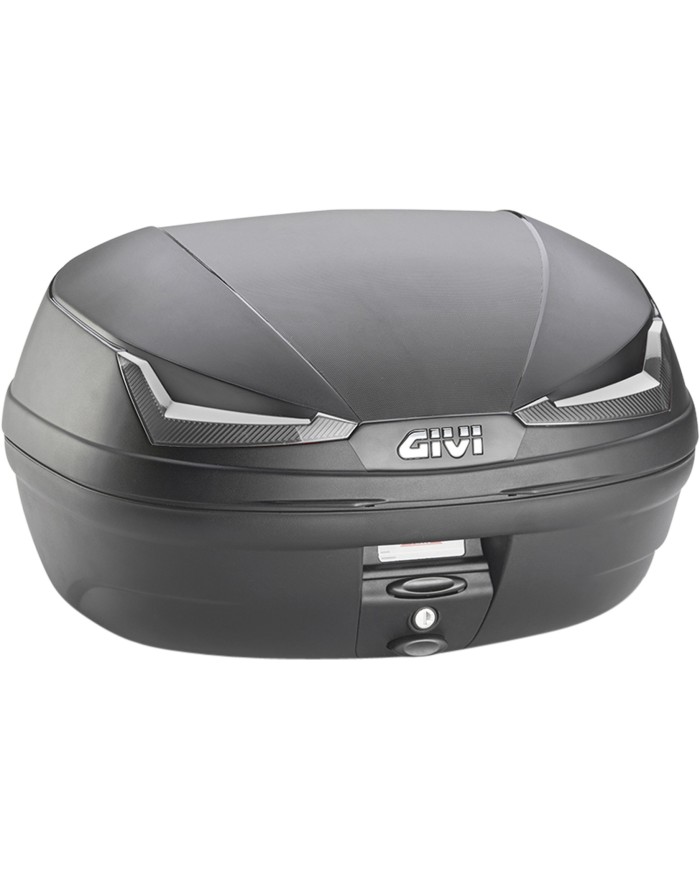 Topcase schwarz, mit roten Reflektoren. Universalplatte und Montagekit