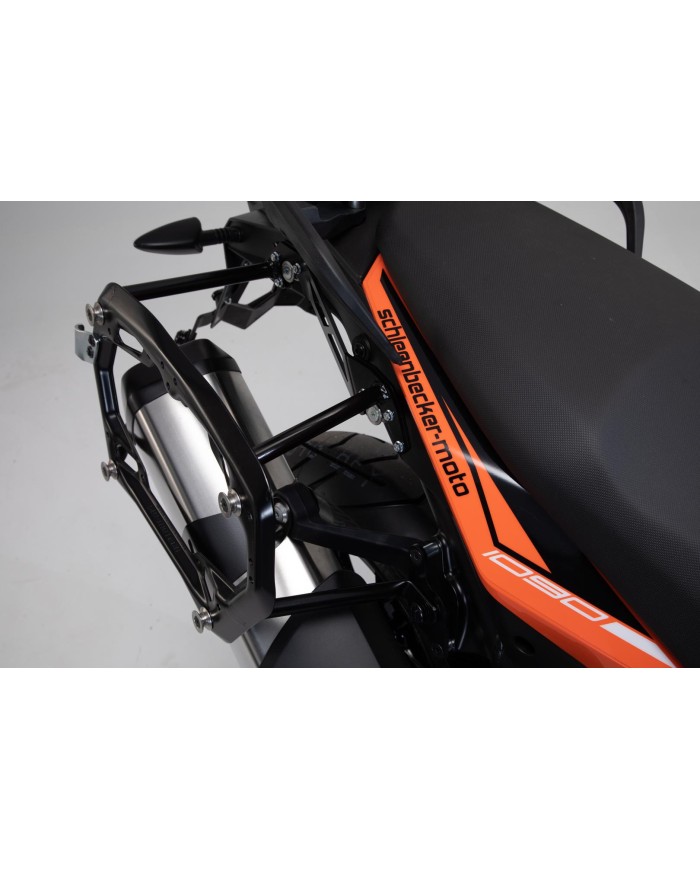 • Für die Montage von Seitenkoffern am PRO Seitenträger sind spezifische Adapterkits notwendig. Diese sind separat erhältlich für die SW-MOTECH Koffer der Serien TRAX ADV, TRAX ION und AERO ABS sowie SysBag WP L mit Adapterplatte. Auch für Koffersysteme anderer Hersteller sind Adapterkits separat erhältlich.