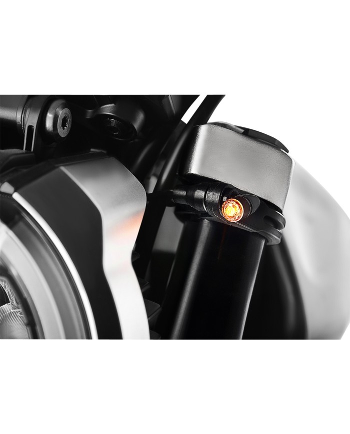 Les supports spécialement développés pour la nouvelle unité de clignotants Light Unit offrent une grande polyvalence d'utilisation car la plupart des motos peuvent en être équipées. Les kits de montage, en combinaison avec les nouveaux supports pour chaque moto, offrent une finition parfaite, car le montage a été optimisé à l'avant et à l'arrière. Le polymère de haute qualité utilisé est très élastique, résistant et soutient, en tant qu'innovation, l'avantage des petits clignotants et peut également être utilisé sur le support de plaque d'immatriculation Rizoma.