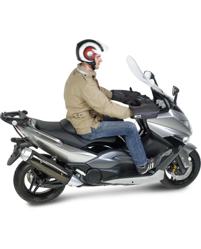 Une nouvelle version des chauffe-mains : GIVI a créé ce protège-mains en deux parties en polyester imperméable, avec une doublure intérieure chaude qui garde les mains au chaud à coup sûr par temps froid ou inconfortable. Les chauffe-mains TM418 sont concus pour une utilisation universelle sur n'importe quel guidon, avec n'importe quel type de rétroviseur. Leur structure indéformable permet une insertion facile et rapide des mains. Tissu (intérieur) : cuir d'agneau