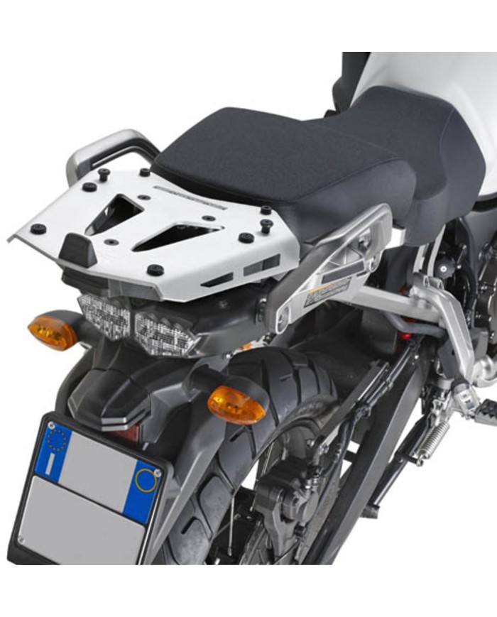 Support alu spécifique pour coffre Monokey ®. (Monokey ® kit de montage est inclu dans l´ensemble.) L´installation des connexions électriques des feux stop et / ou de la télécommande pour top-case n´est pas possible.