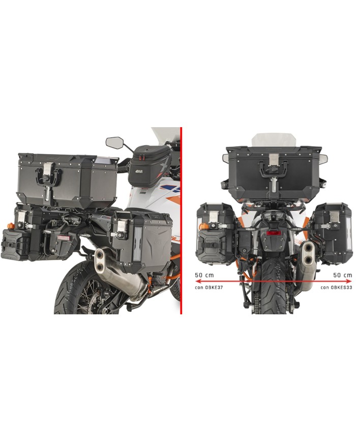 Support de valises latérales spécifique en tube d'acier PL ONE-FIT avec déport latéral droit pour la configuration Trekker Outback MONOKEY® CAM-SIDE