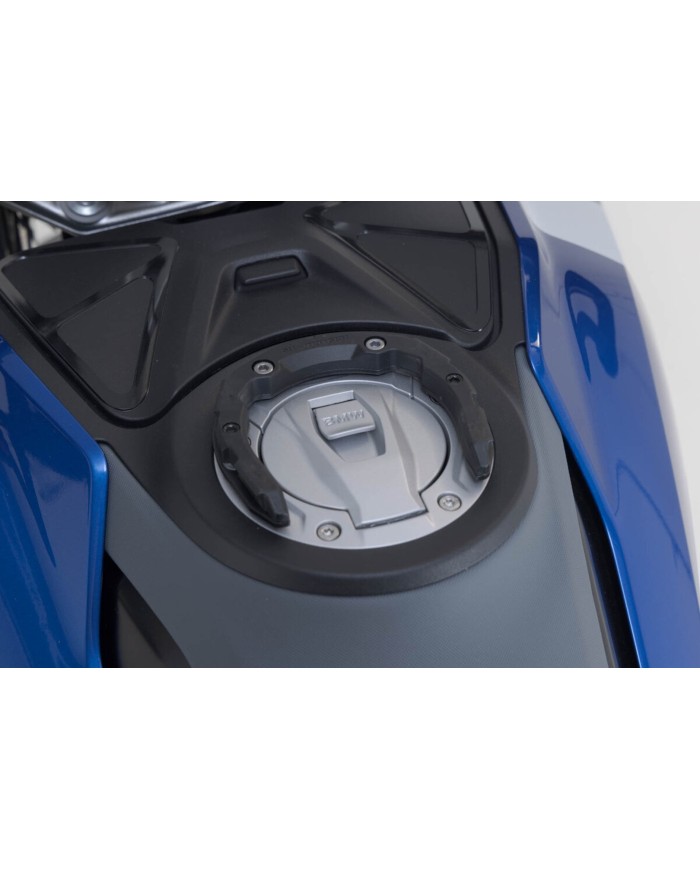 Le mécanisme de verrouillage mécanique sécurise le sac de réservoir, tandis que les aimants guident les deux parties de la bague ensemble. Le plastique renforcé de fibres de verre robuste avec sa géométrie de verrouillage hautement précise garantit que le sac de réservoir reste solidement en place dans toutes les conditions routières