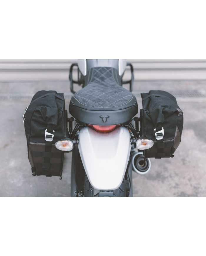 La conception précise et spécifique aux modèles des supports latéraux permet un montage simple et sûr sur les points d?arrêt originaux du véhicule. Un système de fermeture rapide permet de fixer et de retirer les sacoches latérales en peu de gestes, sans que le conducteur ne soit contraint de renoncer à une fixation fiable des sacoches.