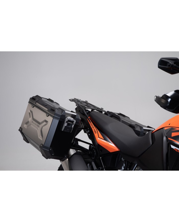 • Pour le montage de valises latérales sur le support latéral PRO, des kits d'adaptation spécifiques sont nécessaires. Ceux-ci sont disponibles séparément pour les valises SW-MOTECH des séries TRAX ADV, TRAX ION et AERO ABS ainsi que pour le SysBag WP L avec plaque d'adaptation. Des kits d'adaptation sont également disponibles séparément pour les systèmes de valises d'autres fabricants.