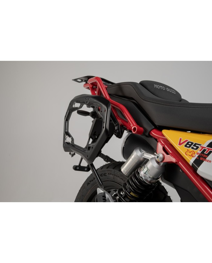 - Pour le montage de valises latérales sur le support latéral PRO, des kits d'adaptation spécifiques sont nécessaires. Ceux-ci sont disponibles séparément pour les valises SW-MOTECH des séries TRAX ADV, TRAX ION et AERO ABS ainsi que pour le SysBag WP L avec plaque d'adaptation. Des kits d'adaptation sont également disponibles séparément pour les systèmes de valises d'autres fabricants.