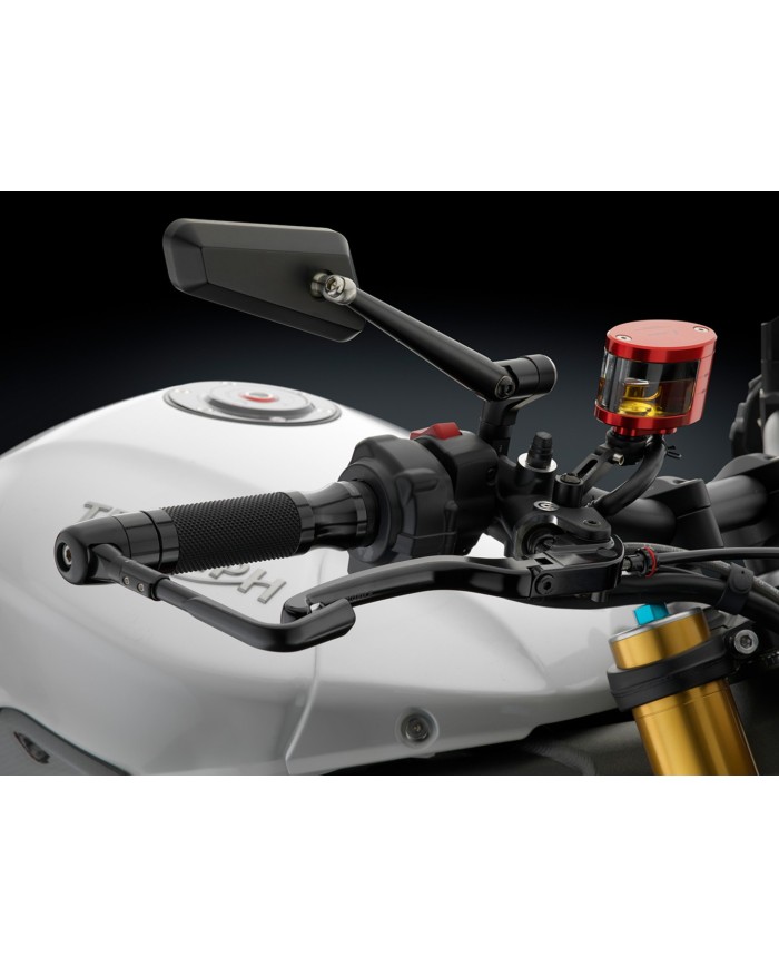 Le système ProGuard breveté de Rizoma est un must absolu pour tout pilote ambitieux. Il protège le levier de frein et d'embrayage contre les contacts involontaires avec d'autres. De plus, le système ProGuard de Rizoma élimine presque complètement la pression du vent sur les leviers de frein et d'embrayage. Breveté, Protecteur, Économiseur d'énergie.
