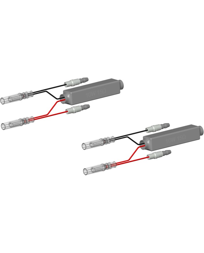 Résistance Rizoma 10 Ohm pour équilibrer la fréquence de clignotement. Application sous réserve, car l'électronique des véhicules respectifs a des contrôles différents. Spécifications techniques : 15 Ohm. Ensemble composé de 2 pièces (1 résistance par clignotant Rizoma). Lors du montage des clignotants, des relais indépendants de la charge peuvent également être utilisés.