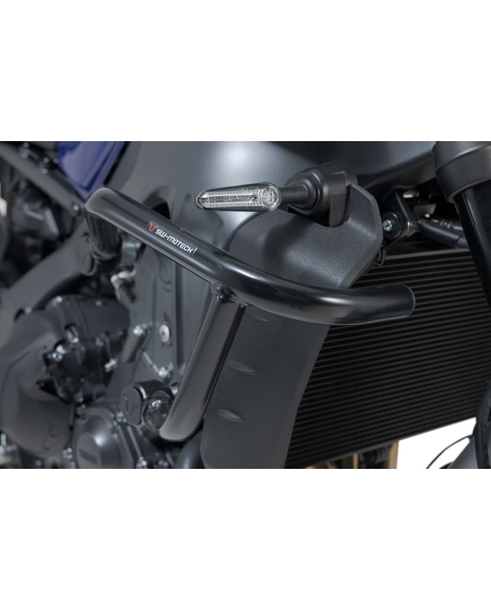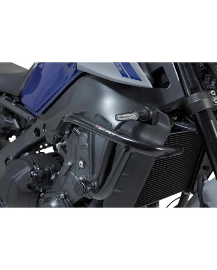 \nAdaptés à la Yamaha MT-09, les crashbars en tubulure d'acier d'un diamètre de 27 mm sont disponibles avec un revêtement époxy noir résistant aux intempéries et à la corrosion. La finition de surface a lieu dans une installation ultramoderne de l'usine SW-MOTECH de Brno, en République tchèque.