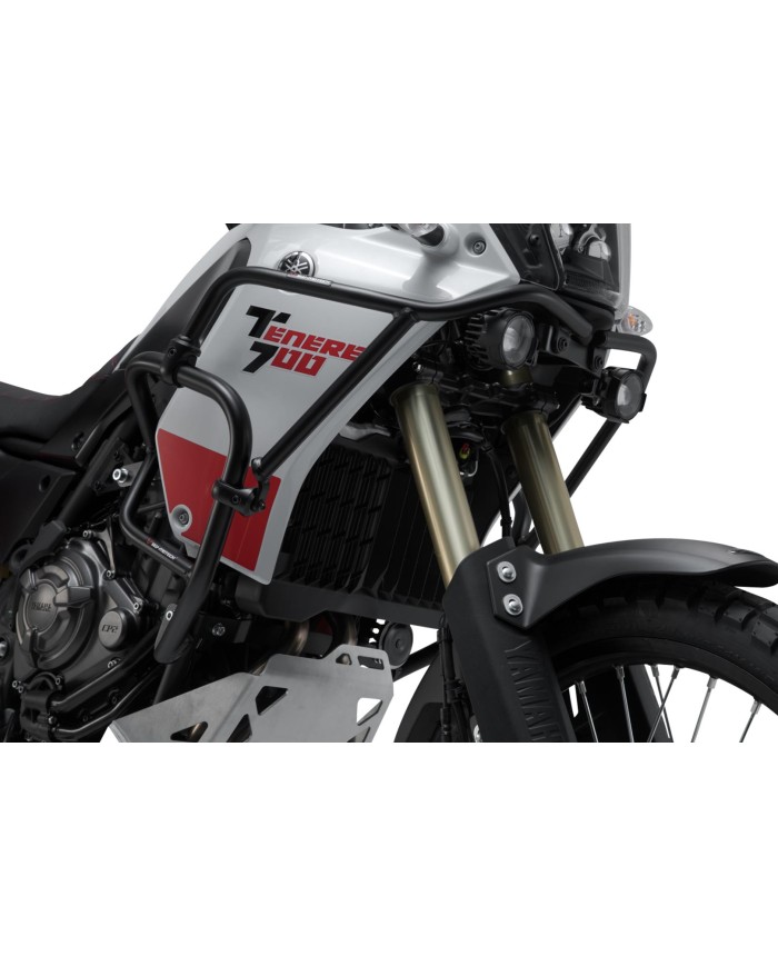 Conformes à l'apparence de la Yamaha Ténéré 700, les barres de protection en tube d'acier de 22 mm de diamètre sont proposées avec un revêtement en poudre résistant aux intempéries et à la corrosion en noir. Le traitement de surface est réalisé dans une installation ultramoderne de l'usine SW-MOTECH à Brno, en République tchèque.