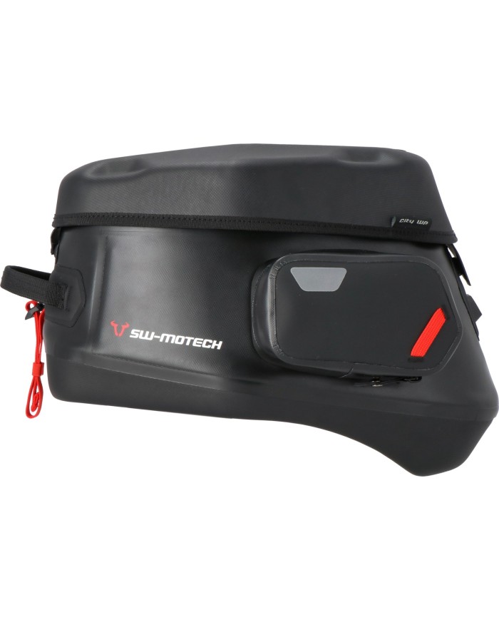 \nLa sacoche de réservoir PRO City WP est l'accessoire idéal de toutes les motos d'enduro et de voyage pourvues d'un réservoir incliné. Avec un volume de bagages de 9 litres, elle offre un abri sec à toutes tes affaires. Pas besoin de housse de pluie, ni de sacoche intérieure supplémentaire ! Dotée d'un filet de rangement, la cloison ajustable située dans le compartiment intérieur garantit un rangement intelligent des bagages. Les poches extérieures stables sont équipées de fermetures éclair étanches. Elles sont donc complètement étanches elles aussi.