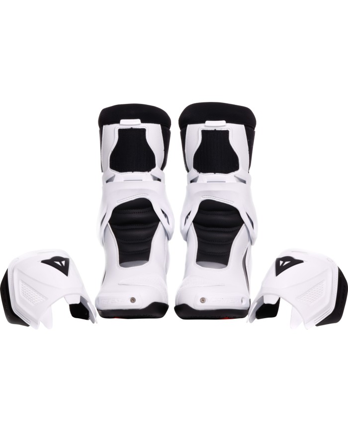 Les plus hauts niveaux de protection de la cheville, du tibia et du talon sont assurés par le système Axial et les semelles innovantes Groundtrax®, concues pour garantir adhérence et résistance à la chaleur.Concues pour être portées de deux manières : en dessous de la combinaison ou du pantalon, sans protège-tibia, pour une plus grande liberté de mouvement et de confort, tout en conservant la protection garantie par le système anti-torsion ; ou bien par-dessus la combinaison ou le pantalon, avec le protège-tibia intégré pour une protection encore plus complète.La structure avec la fermeture éclair de 10 mm sur le dos, résistant à la casse, la tige intérieure en tissu D-Stone, le haut niveau de flexion et le confort sur les articulations garantissent un confort maximal lors de la conduite dans les deux modes d?utilisation.Elles sont également extrêmement pratiques grâce à leur facilité d?enfilage et de fermeture.
