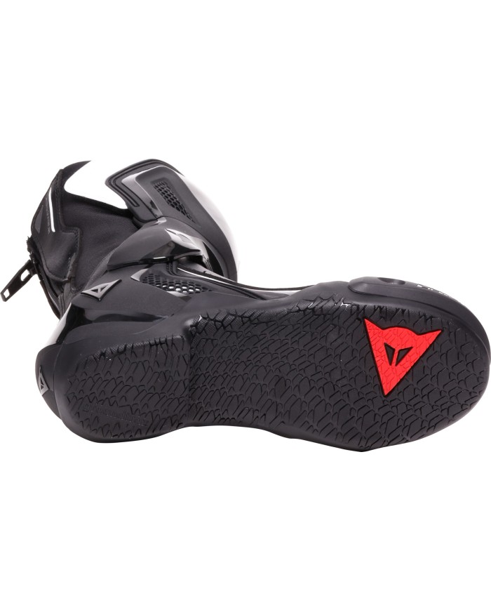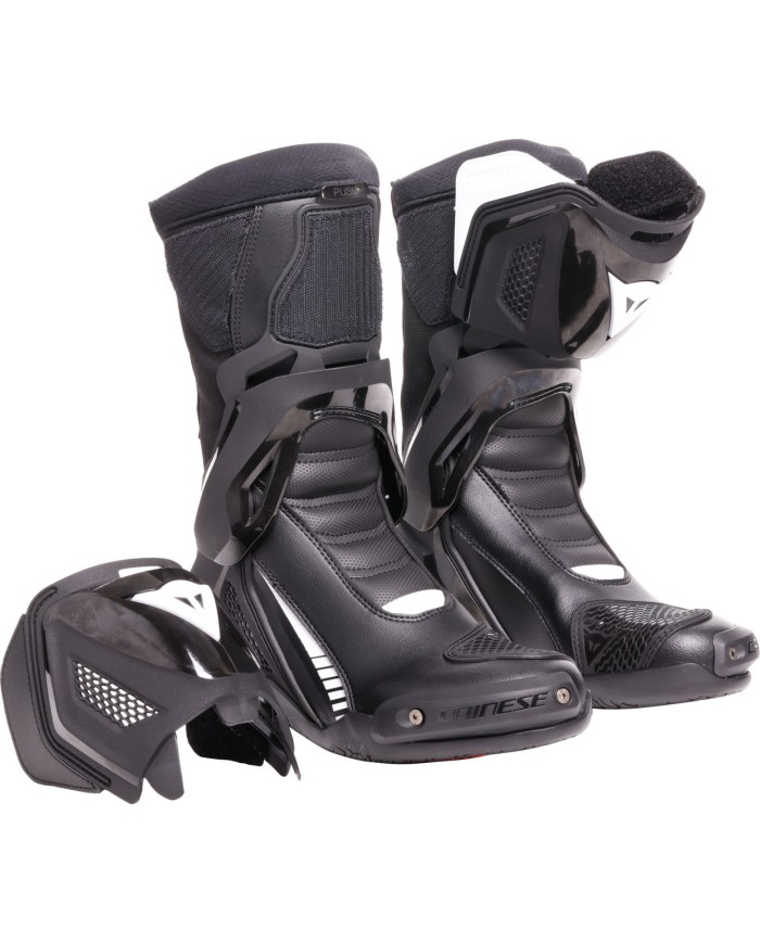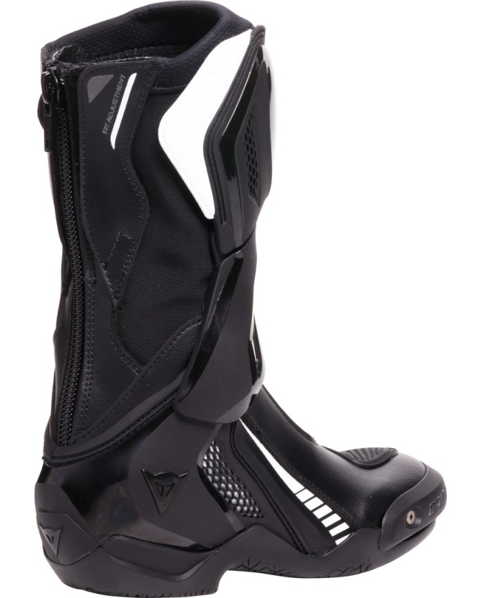 Les plus hauts niveaux de protection de la cheville, du tibia et du talon sont assurés par le système Axial, et les semelles innovantes Groundtrax® sont concues pour garantir adhérence et résistance à la chaleur.Concues pour être portées de deux manières : en dessous de la combinaison ou du pantalon, sans protège-tibia, pour une plus grande liberté de mouvement et de confort, tout en conservant la protection garantie par le système anti-torsion ; ou bien par-dessus la combinaison ou le pantalon, avec le protège-tibia intégré pour une protection encore plus complète.La structure avec la fermeture éclair de 10 mm sur le dos, résistant à la casse, la tige intérieure en tissu D-Stone, le haut niveau de flexion et le confort sur les articulations garantissent un confort maximal lors de la conduite dans les deux modes d?utilisation.Elles sont également élastiques, serrées et pratiques grâce à leur facilité d?enfilage et de fermeture.