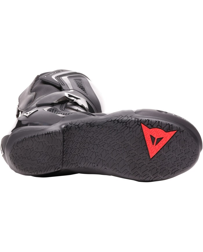 Le niveau de protection est complété par le curseur d?orteils, interchangeable avec les versions en métal ou en plastique, et la protection du sélecteur en TPU. La zone médiane du talon présente des finitions texturées pour une meilleure adhérence à la moto.