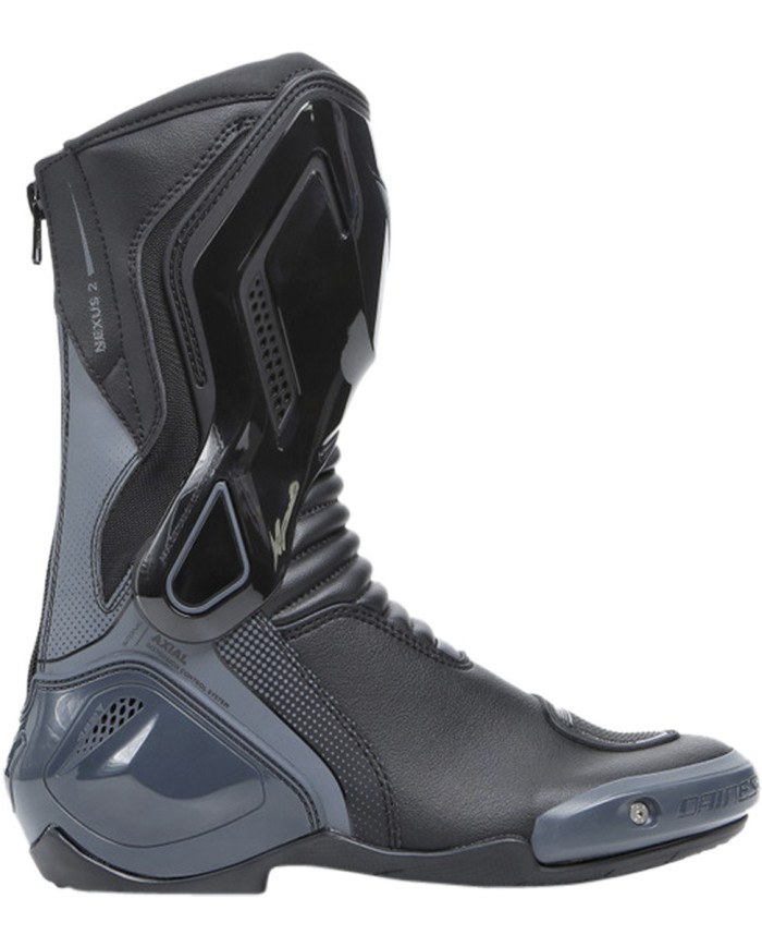 Bottes de moto sportives pour femme Dainese Nexus 2 Lady, avec protections certifiées, spécialement conçues pour s’adapter à l’ergonomie du pied féminin. Réalisées en microfibre et en D-Stone avec des inserts en nylon au talon, elles sont dotées de curseurs thermoplastiques remplaçables, du système de flexion contrôlée de l’articulation de la cheville Axial Distortion Control System et d’inserts en nylon sur le talon. Elles représentent le mariage parfait entre hauts niveaux de protection, confort maximal et grande légèreté.