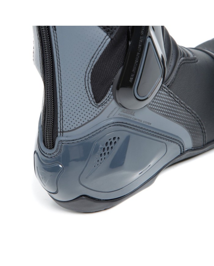 Bottes de moto sportives pour femme avec système anti-torsion Axial Distorsion Control System et curseurs thermoplastiques remplaçables.