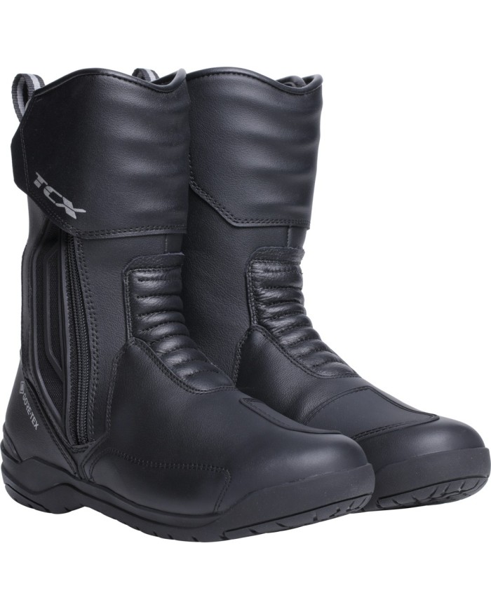 Les nouvelles bottes TCX X-FIVE 5 GORE-TEX sont l'essence même de l?expérience de conduite et du confort sans compromis. Concues pour les voyageurs qui exigent le meilleur en matière de protection, de fonctionnalité et de performances sur route, ces bottes certifiées incarnent un choix facile pour tous les passionnés de moto et de Touring. Avec une protection imperméable longue durée assurée par la membrane Gore-Tex Performance ePE®, une technologie développée dans le souci de la durabilité environnementale, ces bottes garantissent un confort interne thermique exceptionnel, quelles que soient les conditions météo. Le chaussant facilité s'adapte à chaque anatomie pour un confort extrême aussi bien en conduisant qu?en marchant, tandis que la nouvelle semelle Groundtrax® Road Touring offre stabilité, adhérence et traction optimale sur les repose-pieds. Sécurité supérieure grâce à la protection tibia thermoformée et au protège-sélecteur en PU. Fabriquées avec des matières de haute qualité, comme la tige en cuir et en microfibre, équipées de l?assise plantaire OrthoLite X40®, qui se distingue par sa respirabilité et son amorti durable, ces bottes sont le choix ultime pour les motards à la recherche d'un confort extrême, d'une protection et de performances supérieures sur route.