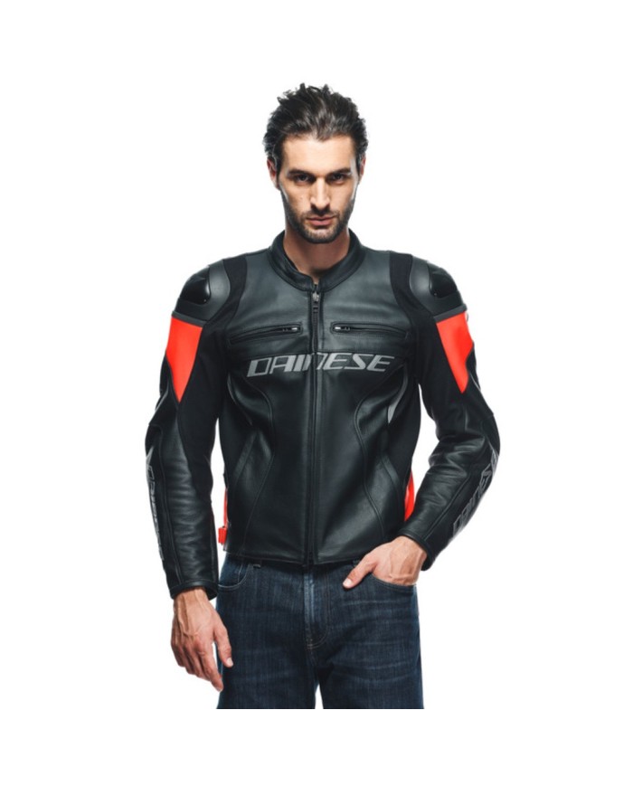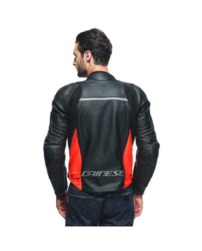 Dainese Veste en cuir Racing 4 noir-fluo rouge