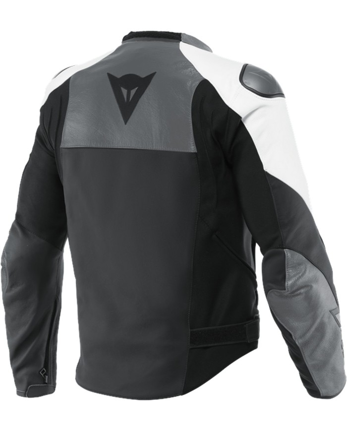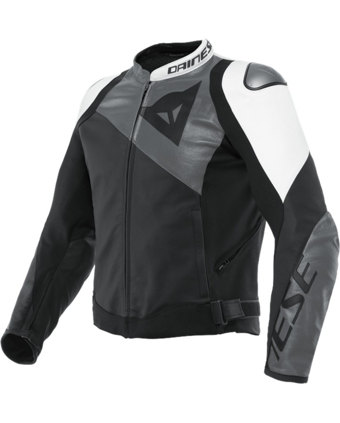 Veste de moto Dainese Sportiva Perf, réalisée en cuir de vache Tutu souple et résistant, perforé pour garantir un confort thermique maximal lors des journées les plus chaudes.