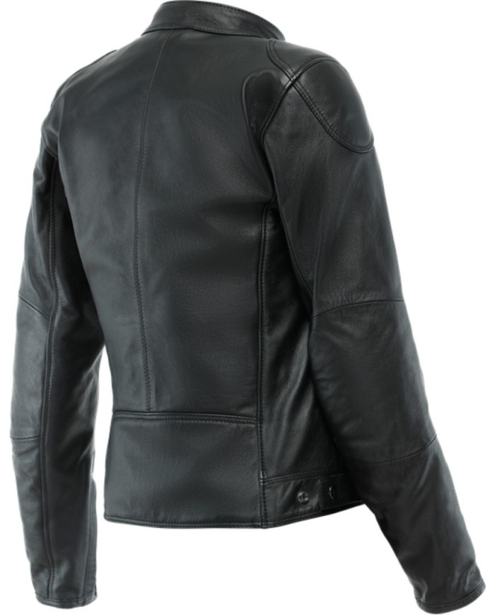 Veste de moto pour femme en cuir Laverda d?excellente qualité, qui marie un style inspiré des iconiques vêtements de motocyclisme avec la protection Dainese Pro-Shape 2.0 : une technologie qui garantit une protection maximale sans compromettre le confort et qui se traduit par des protections souples, flexibles, invisibles et résistantes, certifiées selon la norme EN1621.1 Electra Lady est un classique Dainese : une icône des vestes de moto en cuir pour femme, dotée d?une poche pour la protection dorsale, de boutons sur les hanches, d?une couche thermique intérieure amovible en tissu Sanitized® respirant et perforé pour s?adapter aux climats des différentes saisons. D?autres éléments fonctionnels comme le passant pour fixer la veste et le pantalon ou les nombreuses poches font de cette veste de moto pour femme la solution parfaite pour les voyages de courte et moyenne distance, même par temps chaud.