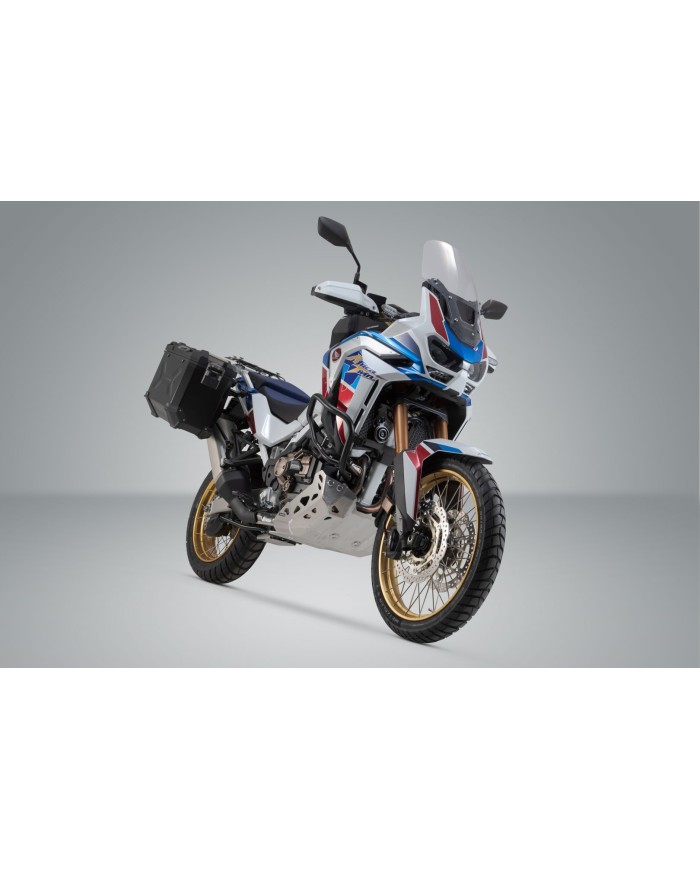 \r\nLes robustes valises en aluminium TRAX ADV se sentent chez elles sur tous les terrains : les estampages de design soutiennent la stabilité du matériau mural en aluminium soudé de 1,5 millimètre d'épaisseur. Un couvercle entièrement amovible avec des poignées en aluminium anodisé et des fermetures rapides facilite le chargement et le déchargement des valises de moto, le bord latéral biseauté offre une grande garde au sol dans les virages. Avec cette solution complète, vous avez tous les composants nécessaires pour partir directement en grand voyage avec TRAX : deux valises latérales TRAX ADV étanches, deux supports latéraux amovibles SW-MOTECH, un kit d'adaptation, un jeu de serrures, un limiteur d'ouverture et une protection contre le vol à un prix global attractif. Les supports spécifiques au modèle et la taille des valises sont parfaitement adaptés à la géométrie arrière et au système d'échappement de la moto.