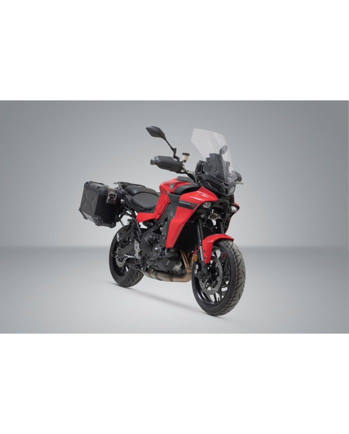 \r\nLes robustes valises en aluminium TRAX ADV se sentent chez elles sur toutes les routes : les estampages de design soutiennent la stabilité du matériau mural en aluminium soudé de 1,5 millimètre d'épaisseur. Un couvercle entièrement amovible avec des poignées en aluminium anodisé et des fermetures rapides facilite le chargement et le déchargement des valises de moto, le bord latéral biseauté offre une grande garde au sol dans les virages. Avec cette solution complète, vous avez tous les composants nécessaires pour partir directement en grand voyage avec TRAX : deux valises latérales TRAX ADV étanches, deux supports latéraux SW-MOTECH amovibles, un kit d'adaptation, un jeu de serrures, des limiteurs d'ouverture et une protection contre le vol à un prix global attractif. Les supports spécifiques au modèle et la taille des valises sont parfaitement adaptés à la géométrie arrière et au système d'échappement de la moto.