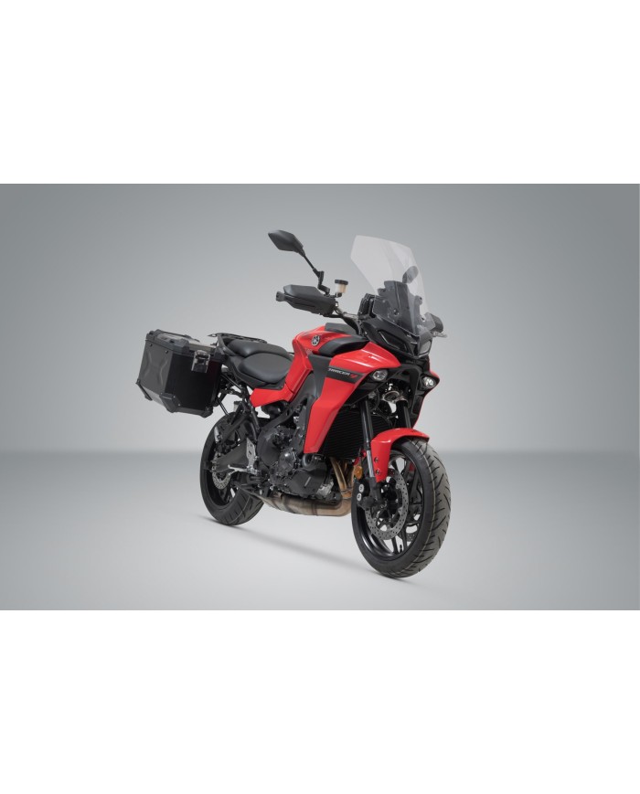 \r\nLes robustes valises en aluminium TRAX ADV se sentent chez elles sur toutes les routes : les estampages de design soutiennent la stabilité du matériau mural en aluminium soudé de 1,5 millimètre d'épaisseur. Un couvercle entièrement amovible avec des poignées en aluminium anodisé et des fermetures rapides facilite le chargement et le déchargement des valises de moto, le bord latéral biseauté offre une grande garde au sol dans les virages. Avec cette solution complète, vous avez tous les composants nécessaires pour partir directement en grand voyage avec TRAX : deux valises latérales TRAX ADV étanches, deux supports latéraux SW-MOTECH amovibles, un kit d'adaptation, un jeu de serrures, des limiteurs d'ouverture et une protection contre le vol à un prix global attractif. Les supports spécifiques au modèle et la taille des valises sont parfaitement adaptés à la géométrie arrière et au système d'échappement de la moto.