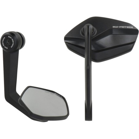 \r\nDonne à ta moto BMW un style unique avec les rétroviseurs de bout de guidon de SW-MOTECH. Fabriqués en aluminium forgé et usiné, anodisés en noir avec des détails de logo gravés, ils apportent une touche robuste et élégante à ton guidon.