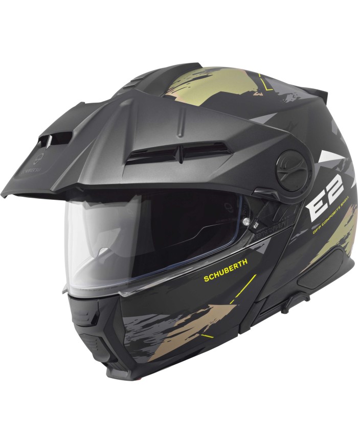 Le SCHUBERTH E2 est la deuxième génération de casques SCHUBERTH Adventure et, de ce fait, un autre casque de la gamme SCHUBERTH bénéficiant d'une double homologation P/J et conforme à la nouvelle norme ECE-R 22.06. Le SCHUBERTH E2 offre un parfait équilibre entre le confort de la célèbre série « C » et le look agressif d'un casque tout-terrain.