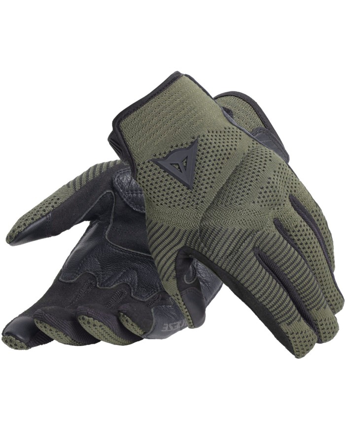 Gants de moto en tissu tricoté avec protections des articulations viscoélastiques préformées. Système Smart Touch au niveau des doigts.