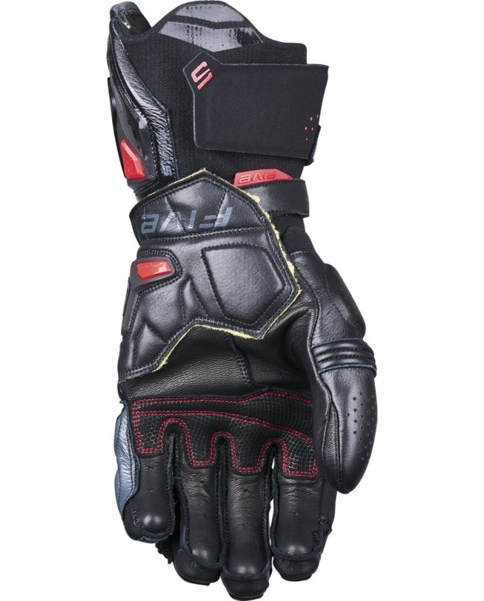 • Bande anti-torsion en cuir de chèvre et Schoeller®-Keprotec entre l'annulaire et le petit doigt pour limiter le risque de séparation des doigts en cas de chute (une innovation FIVE) Renfort de paume imprimé numériquement en cuir de chèvre pour une adhérence optimale