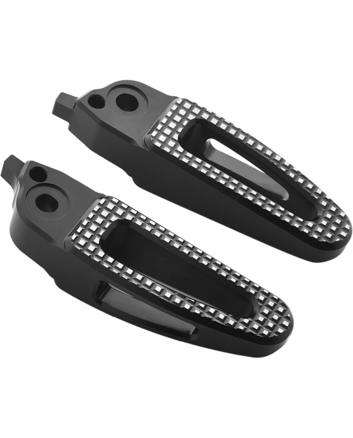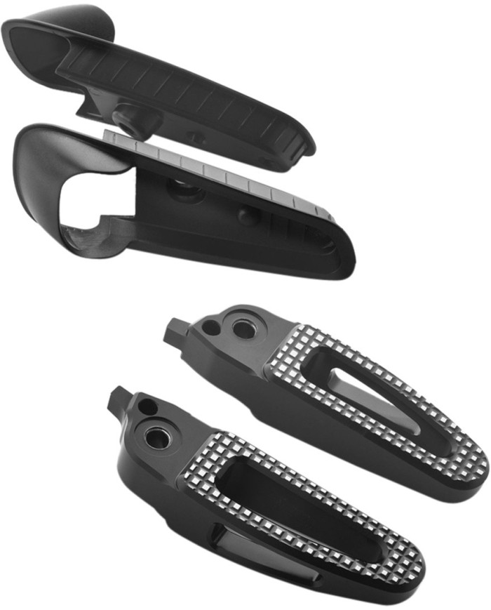 Fabriquées en aluminium de qualité supérieure et équipées de supports cachés en ABS avec des couvercles en technopolymère, elles ne sont pas seulement fonctionnelles, mais aussi esthétiquement attrayantes. La double finition offre la meilleure adhérence et les ouvertures sur le dessus et les côtés assurent légèreté et aération. Certifiées TÜV, vous pouvez être sûr que vous êtes non seulement stylé, mais aussi en sécurité sur la route. Offrez à votre passager la meilleure expérience Vespa et investissez dans les repose-pieds passager Rizoma.