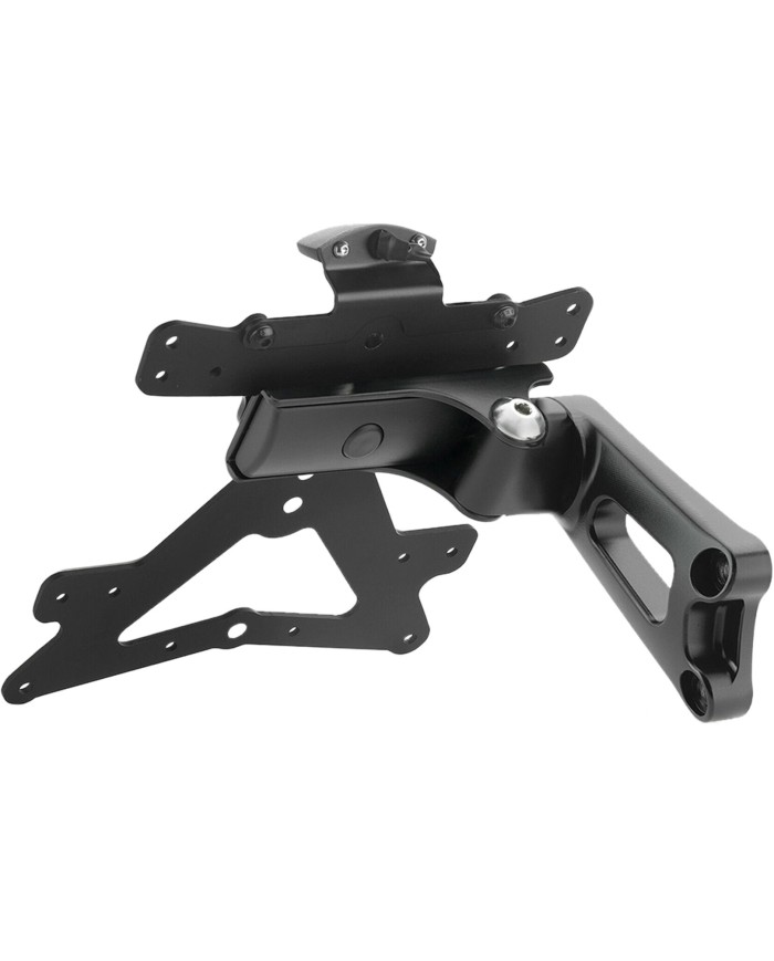 Le kit de support de plaque Outside avec une structure porteuse en aluminium usinée dans la masse confère à l'essieu arrière non seulement un look totalement nouveau, mais assure également une performance structurelle excellente et une esthétique très attrayante grâce à ses dimensions compactes et à son matériau de haute qualité. Concu spécialement pour le modèle de moto respectif, le kit est facile à monter et comprend des adaptateurs pour clignotants Rizoma, le cache inférieur du cadre arrière ZBW048, un réflecteur, une plaque de support de plaque d'immatriculation US ainsi qu'un éclairage de plaque d'immatriculation à LED SMD homologué pour la route. Le support de plaque Outside PT707B dispose d'une certification ABE.