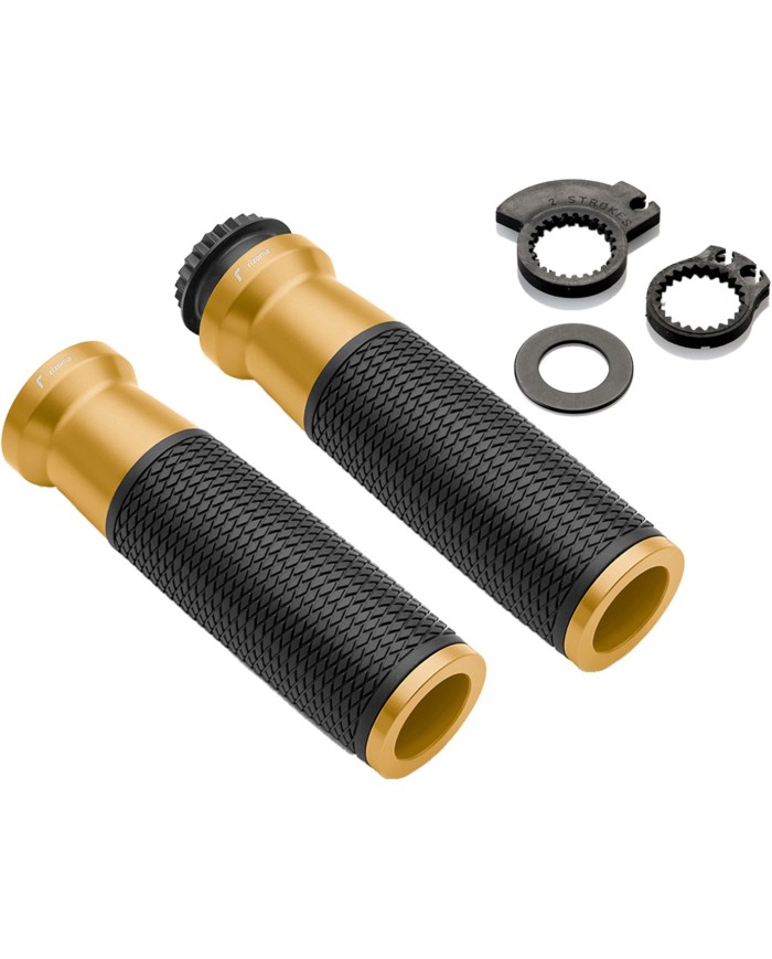 La poignée Urlo (Ø 22 mm), entièrement en aluminium, se distingue par sa forme ergonomique et le traitement spécial du caoutchouc assure une adhérence maximale.