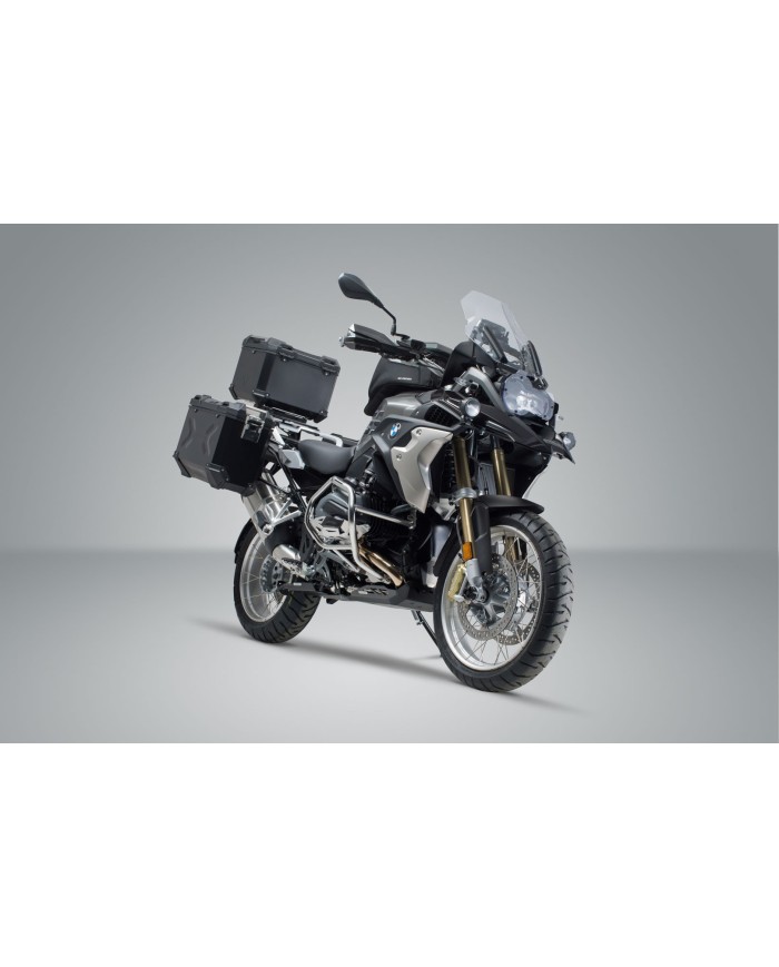 Cet ensemble est le forfait tout compris pour chaque tournée. Les valises en aluminium TRAX ADV Premium, étanches à l'eau et à la poussière, deux valises latérales et un top case, offrent la meilleure protection pour vos bagages. Le développement spécifique au modèle du support latéral PRO amovible et du porte-bagages ADVENTURE-RACK garantit un ajustement parfait et une tenue sécurisée des valises en aluminium.