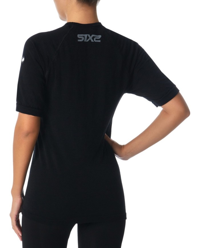 Le t-shirt fonctionnel à manches courtes en mérinos de SIXS est parfait pour les activités hivernales froides. La combinaison de laine mérinos de haute qualité et de polypropylène assure une excellente protection contre le froid et une thermorégulation parfaite. Tandis que la laine mérinos à l'extérieur garde le corps au chaud, le polypropylène hydrophobe transporte l'humidité loin de la peau et vous garde au sec. Ce t-shirt est idéal comme sous-vêtement ou couche intermédiaire et garantit un confort maximal par basses températures.