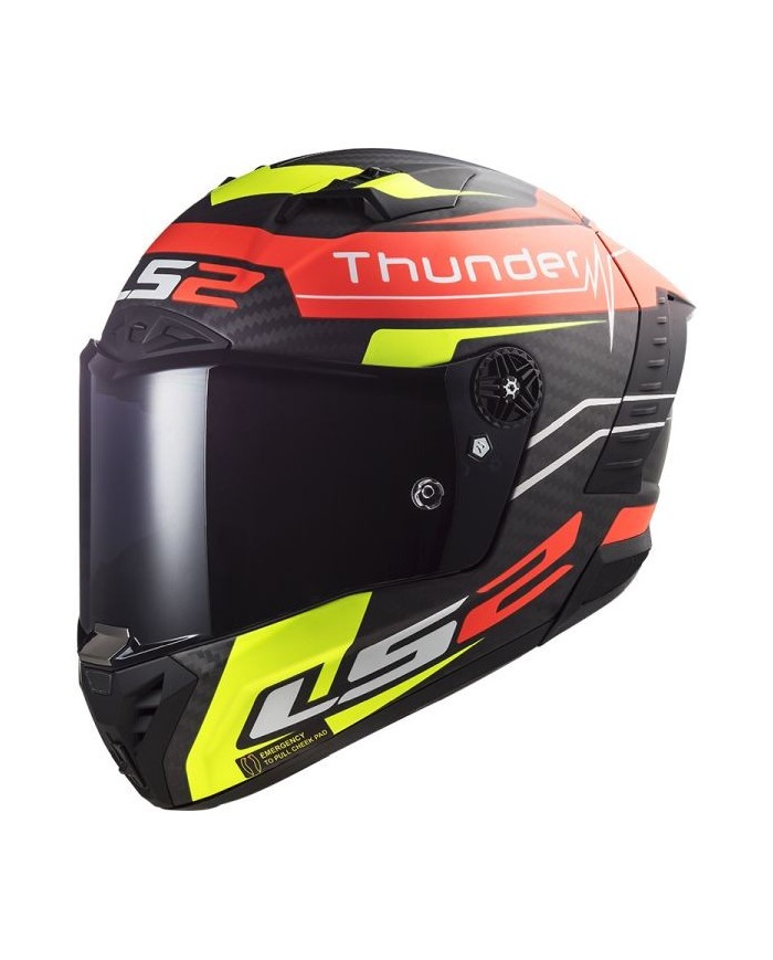 Ce casque intégral de LS2 est un casque haute performance qui convainc par sa construction robuste et son design aérodynamique. Avec son poids léger et sa ventilation polyvalente, il offre un confort maximal, même lors de longs trajets. La visière anti-rayures et la doublure intérieure amovible et lavable assurent une vision claire et une bonne hygiène. Le casque est doté d'une technologie de pointe et offre une excellente sécurité pour toi. Coque extérieureCarboneAérationSystème d'aération efficace avec plusieurs ouvertures d'entrée et de sortieVisièreVisière anti-rayures avec système de changement rapideEquipement supplémentaire avec revêtement intérieur Pinlock anti-buéeDoublure intérieureSur le FF805 Thunder, elle est amovible et lavableForme ergonomique pour un port confortableCaractéristiquesFermeture à double anneau en DSystème de déverrouillage d'urgencePréparé pour les systèmes de communication intégrés de Cardo & LS2 (IntercomSystème Tear Off préparé, pour une vision propre constante sur la routeInclus en plus dans la livraisonAnneau de casquePinlock Max VisionVisière teintée10 feuilles détachables Tear-OffSac de casqueSacoche de casque