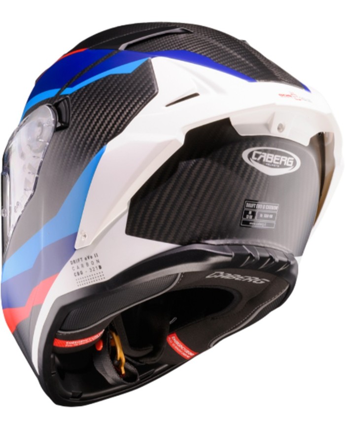 Pour le modèle homologué ECE 22.06, Caberg a développé le dispositif électronique CABERG SOS MEDICAL ID, installé dans le casque pour stocker les données personnelles, les dossiers médicaux et les contacts d?urgence. Grâce à la technologie NFC, les intervenants peuvent rapidement accéder à ces informations avec un smartphone, et les contacts d?urgence peuvent être informés de la localisation du pilote par SMS.