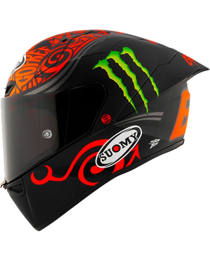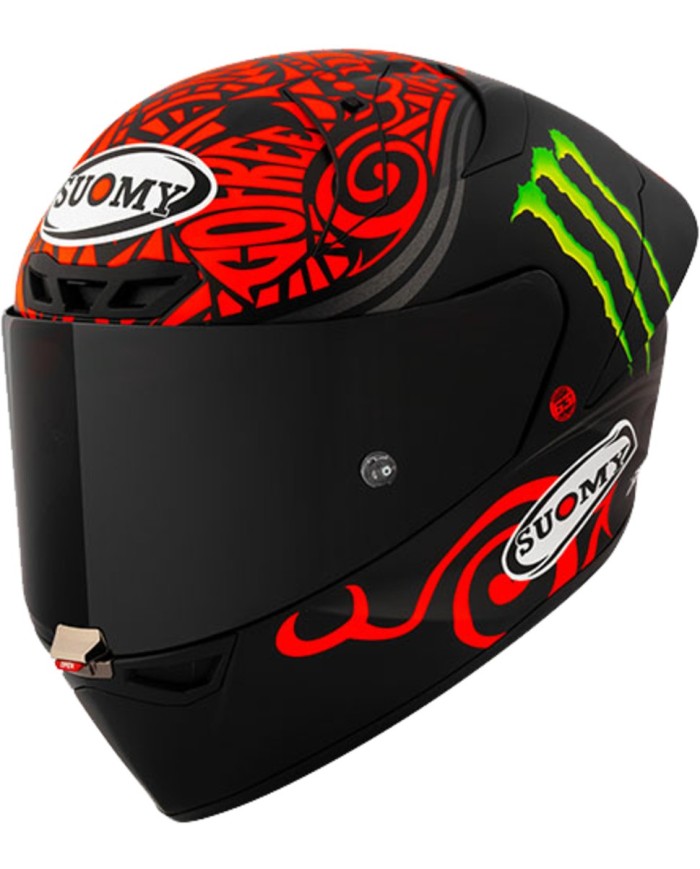 Le tout nouveau Suomy S1-XR GP a été développé en Italie grâce aux méthodes numériques les plus avancées et a été intensivement testé par Pecco Bagnaia, champion du monde Ducati Corse Factory. Il répond aux normes de sécurité FIM les plus élevées et séduit par une aérodynamique extrêmement optimisée, développée pendant plus de trois ans, garantissant une stabilité et une précision exceptionnelles dans toutes les positions de conduite ? droite, en courbe ou au freinage. Le champ de vision considérablement élargi (92° vertical et 210° périphérique) offre une sécurité et une perception renforcées. La doublure intérieure de haute qualité avec traitement antibactérien assure un confort maximal dans toutes les conditions. Utilisé en MotoGP, ce casque s?adresse aux pilotes recherchant des performances de haut niveau et une technologie de pointe.