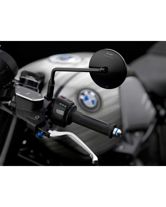 Le Spiegel One présente avec ses lignes arrondies une apparence simple mais d'autant plus marquante. La combinaison de différents matériaux renforce l'apparence de chaque café-racer tant en style qu'en caractère. La grande surface du miroir en verre convexe, anti-éblouissant et teinté en bleu, est conforme aux normes d'homologation routière européennes. Deux fonctions précieuses qui garantissent une visibilité optimale dans toutes les conditions.