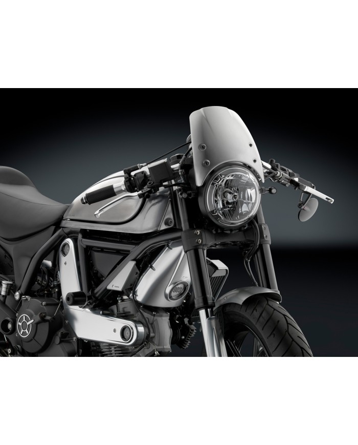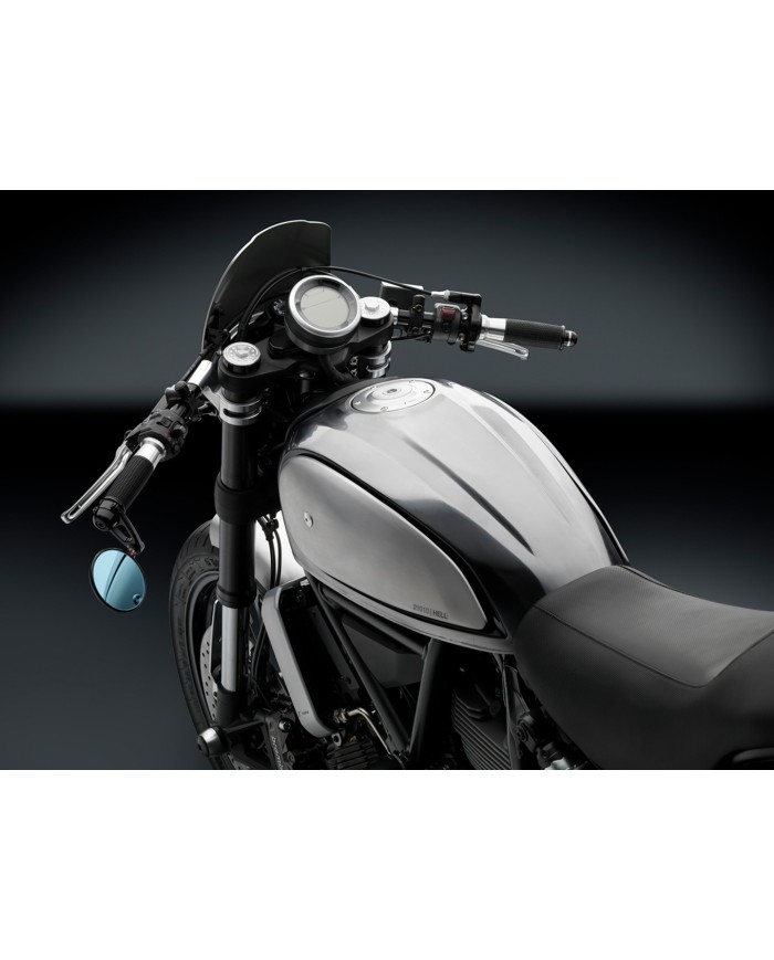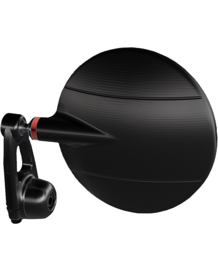 Le bras espion du miroir est proposé en deux tailles différentes. Le verre convexe du miroir, bombé, anti-éblouissant et teinté en bleu, agrandit le champ de vision et le système de réglage spécial offre des possibilités d'ajustement individuelles.