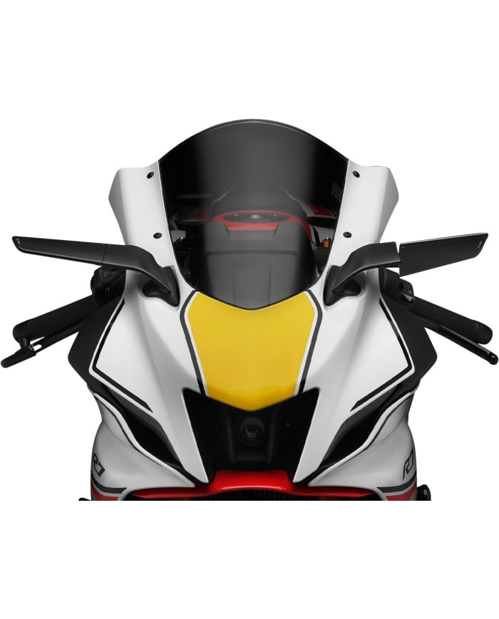 Concu pour disparaître. Né pour aller au-delà. Spécialement concu pour les motos de sport super, le Stealth Sport a été concu pour minimiser l'impact visuel et dominer l'air. Deux éléments : une base fixe intégrée au carénage et un corps mobile qui protège le verre. D'un seul mouvement, la structure se condense et transforme le miroir en une aile aérodynamique. Le résultat : une portance perceptible, jusqu'à 4 kg à 300 km/h. Usiné à partir d'un seul bloc d'aluminium et fini avec une anodisation profonde, il dispose d'une lentille convexe teintée en bleu HD pour une vision claire et sans éblouissement.