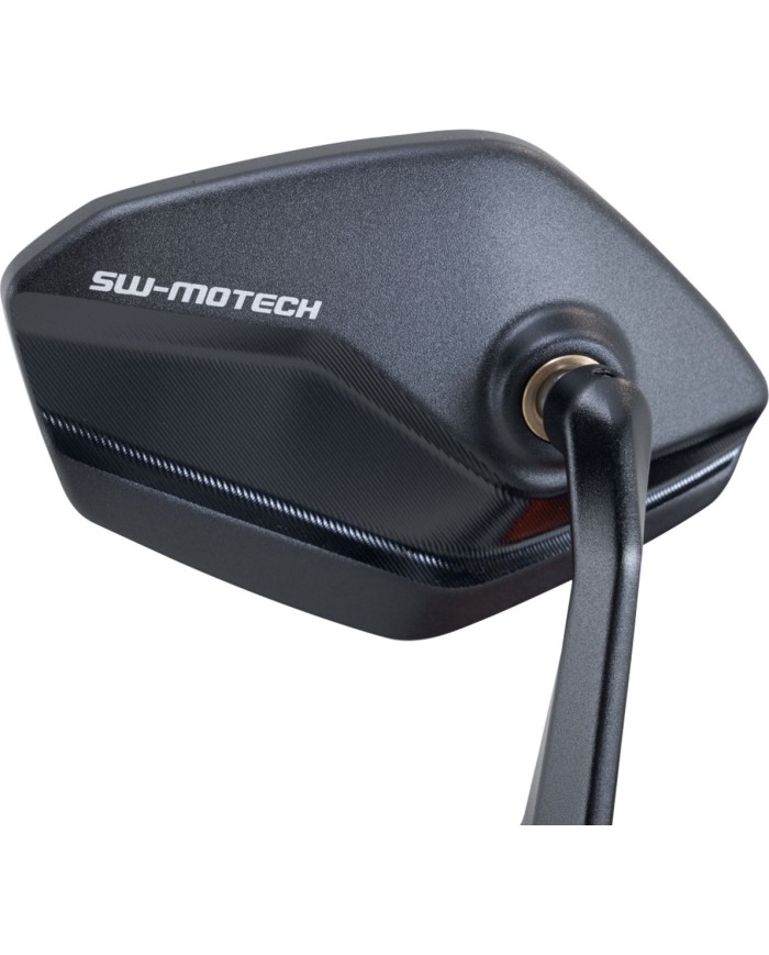 Rétroviseurs en bout de guidonDonne à ta moto un style unique avec les rétroviseurs en bout de guidon de SW-MOTECH. Fabriqués en aluminium forgé et usiné, anodisés en noir avec des détails de logo gravés, ils apportent une touche robuste et élégante à ton guidon.