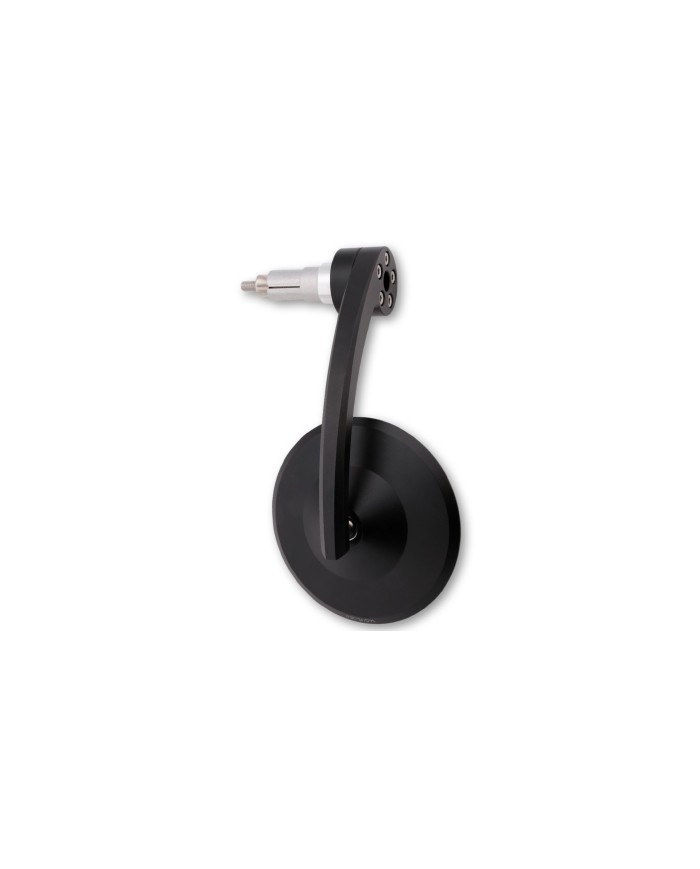 \nHandlebar end mirrors give motorcycles a very special look. If NORMAL mirrors are just too unspectacular for you, you will find the solution in the HIGHSIDER handlebar end mirror range. Discreet, clear - these are the rear view mirrors of the HIGHSIDER MONTANA series. As with its predecessor, the mirror is made of high-quality materials and a uniformly curved stem. Perfectly finished as usual. The matt black anodised aluminium, finely bead-blasted, emphasises the high-quality look. Suitable for handlebars with an inner diameter of 12 to 22 mm, i.e. for most 7/8 inch and 1 inch aluminium or steel handlebars. Can be used for left and right side. Mirror can be mounted on the right and left side as well as standing up or hanging down.