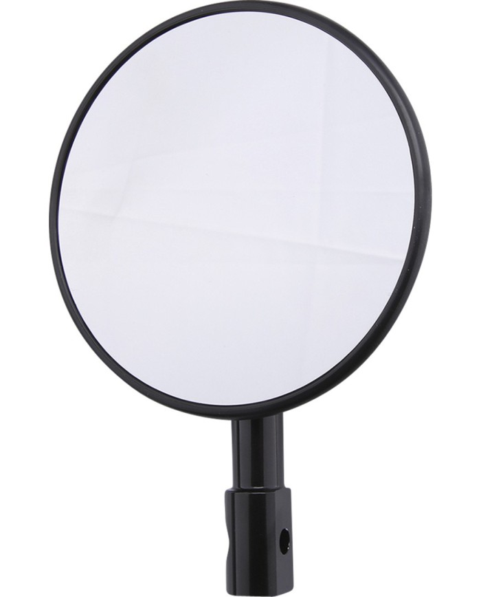 Miroir rond noir avec verre convexe, tige droite et courte et articulation réglable. Approuvé par l'E-watch.
