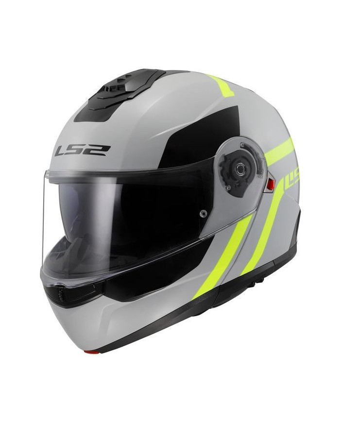 Ce casque modulaire offre des possibilités d'application polyvalentes avec une mentonnière rotative à 90º, homologuée à la fois comme casque jet et intégral. La sécurité est assurée par la coque en alliage polymère cinétique (KPA), tandis que le confort toute la journée est garanti par le rembourrage découpé au laser en 3D. Il est donc le choix idéal pour les navetteurs et les motards en tournée.Coque extérieureKPA (alliage polymère cinétique) pour une protection maximale Trois coques extérieures en tailles XS-S, M-L et XL-3XL Homologation ECE 22.06 VentilationVentilation au niveau du menton et sur le dessus pour une circulation d'air optimale Ventilation arrière et EPS canalisé pour une meilleure aération Déflecteur d'air pour un confort supplémentaire VisièrePréparé pour Pinlock 70 MaxVision Système de double visière avec visière solaire intégrée Résistant aux rayures et aux UV Système de fermeture rapide pour une manipulation facileDoublure intérieureAmovible et lavable pour une fraîcheur durable Respirant et hypoallergénique avec de la mousse découpée au laser pour un ajustement précis CaractéristiquesBoucle pour une fixation facile et sécurisée EPS multicouche pour une absorption des chocs accrue Fermeture renforcée de la mentonnière pour une sécurité supplémentaire Prêt pour LS2 INTERCOM (Bluetooth via Cardo) pour la communication Bande élastique en haut de la doublure intérieure pour un ajustement sécurisé Inclus dans la livraisonSac de casque pour un transport sûr